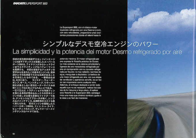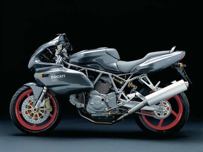 現代のドゥカティのフラッグシップはスーパーバイクシリーズですが、それらが誕生する以前は 750SS など排気量を表す“数字が前に付くスポーツモデル”がその役割を担っていました。今回紹介する SS800は、その流れをくんで 1998年に登場したスーパースポーツシリーズ SS750の進化版で、2003年から 2005年までの3年間だけ販売されたモデルです。グレードは1つでしたが、フルフェアリングとハーフフェアリングの2つのカウルバリエーションが設定されていました。同時にデビューした SS1000DS が空冷992ccのツインプラグエンジン&乾式クラッチとオーリンズのリアサスペンションだったのに対し、SS800は空冷803ccのエンジン&湿式クラッチという違いがあります。残念ながらこの SS800と SS1000DS の生産終了とともにスーパースポーツシリーズは消えてしまいましたが、このときに登場した803ccのエンジンはモンスター796など 2012年の現行モデルに受け継がれています。