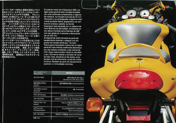 スーパースポーツシリーズは、スーパーバイクより気軽に乗れてモンスターよりスポーツライディングが楽しめるモデルとして人気がありました。中でも 2003年モデルの SS800は、税抜きで 99万円という安価ながらも、SS1000DS と同様の5本スポークの軽量ホイールとアルミスイングアーム、前後フルアジャスタブルサス、リザーバータンク別体のフロントブレーキマスターを備えており、お買い得感から新車販売はとても好調でした。これを受け、ディーラーは引き続きその好調を期待して 2004年モデルをメーカーに発注したのですが……入荷してきた車両を見てビックリ。ホイールはモンスターと同じ3本スポーク、スイングアームはスチール、調整機構のないフロントフォーク、リザーバータンクはマスター一体式にとグレードダウンされていたのです。これにより SS800は魅力を落とし、2004年以降はあまり売れずに生産終了を迎えることとなりました。