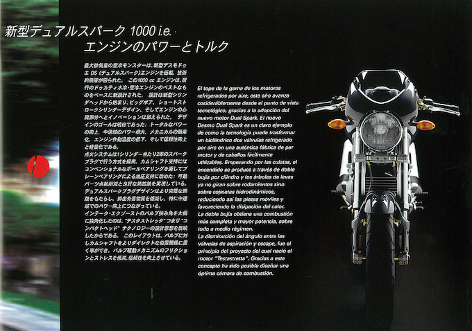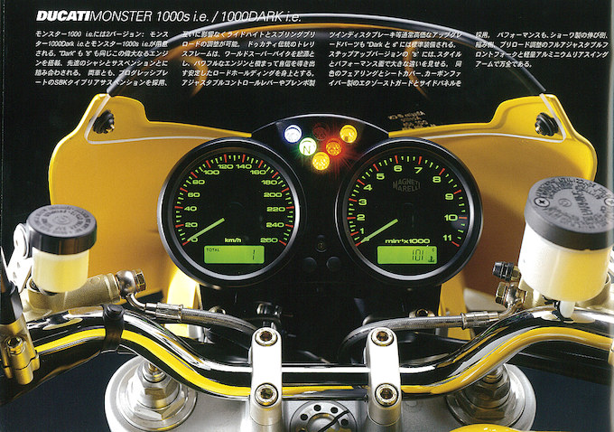 新車当時には人気のなかったモンスター1000ダークですが、2013年現在の中古車として見た場合は非常に魅力のあるモデルなのです。というのも、空冷のモンスターは概ね信頼性が高く、トラブルがほとんどないからです。また、装備が劣るモンスター1000ダークは人気が低く、中古車は安価。ネックとなるグレードの低い足まわりも、車体が安く買えた分でオーリンズなどのリプレイスサスペンションを買えば、当時の上位モデルよりも高い性能が得られますからね。