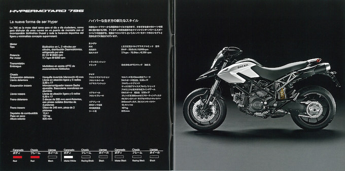 | ハイパーモタード 796 | ハイパーモタード 1100S | ハイパーモタード 1100EVO | ハイパーモタード 1100EVO SP | |