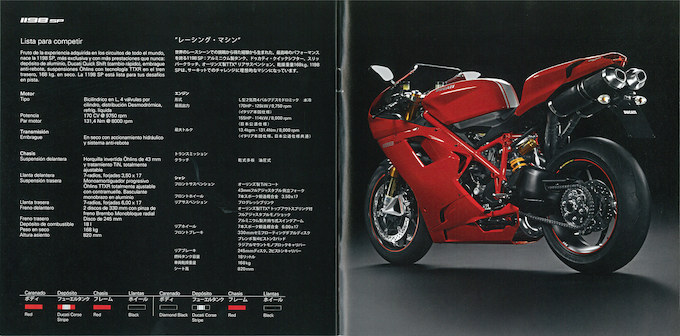 | 1198 | 1198S | 1198Sコルセ スペシャルエディション | 1198SP | 1198Rコルセ スペシャルエディション | |