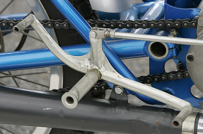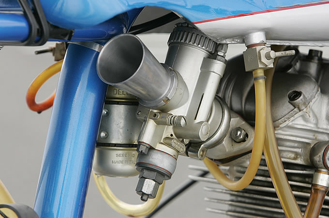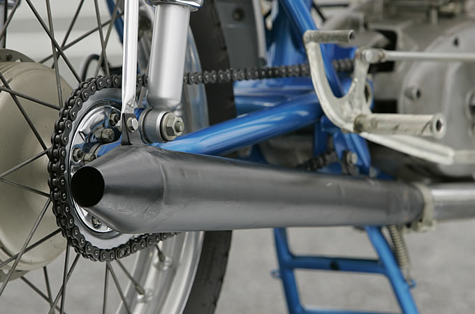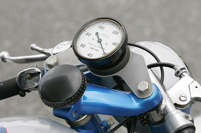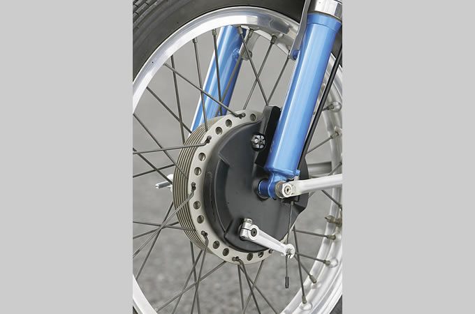 125F3の前後コニカルハブブレーキは、マリアンナとまったく同じもので、パネルとハブにマグネシウム合金が使われている。ドゥカティと同じボローニャに工場があるアマドーリ製。ドラムの内径は前後とも160mmである。