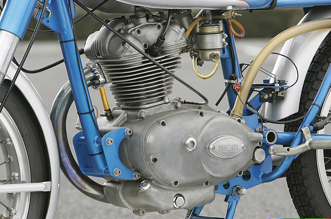 マリアンナの活躍によって、イタリア中にその名を知らせることができたドゥカティは、57年に当初からの予定であった175スポルトの販売に踏み切った。そしてその数ヵ月後には、100ccと125ccモデルが加わることになる。グランプリ用マシンの開発に追われるタリオーニが、その合間を縫って完成させたこの新型車には、バルブスプリングが外から見えないまったく新しいデザインのシリンダーヘッドが搭載されていた。