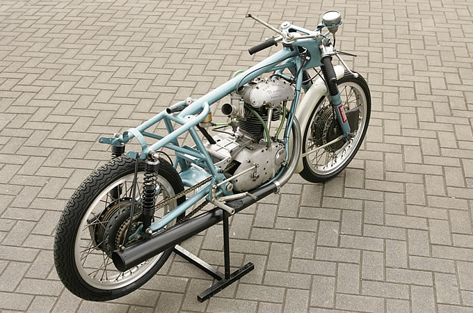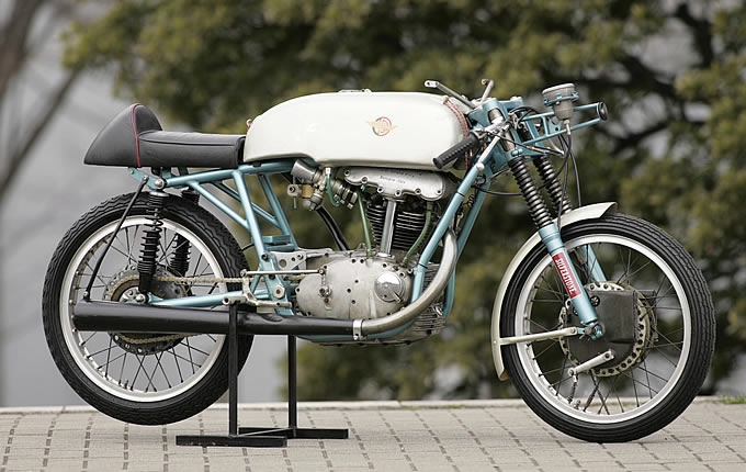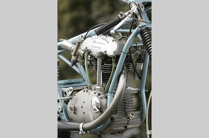 この125グランプリ(ビアルベロ)は最初の年、マリアンヌのフレームをベースにアンダーパイプを取り付けたものが使われたが、翌1958年には新しく設計されたダブルクレードルタイプとなった。フレームと同時にクランクケース形状も変更され、各部が強化されたのである。2年間のみ生産された125グランプリは、合計で約50台が世界中の優秀なライダー達の手に渡り、各国のサーキットで数々の勝利を掴んでいったのだった。
