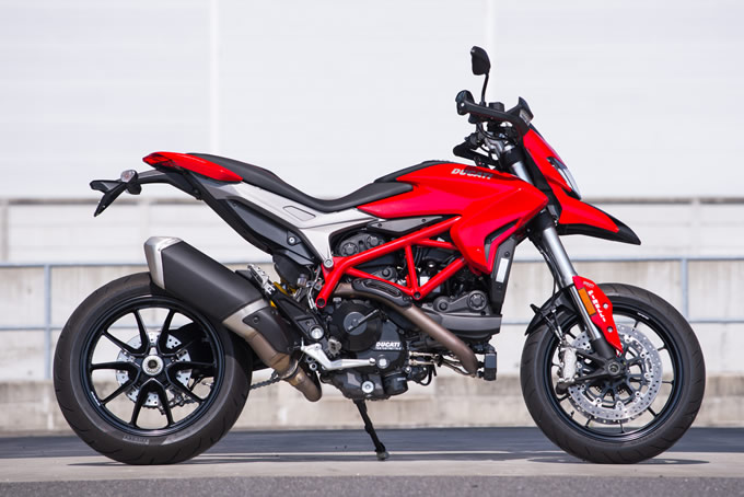 既存のスーパーバイク系やモンスターなどと同様に、初代では796と1100の2機種を設定したハイパーモタードだが、フルモデルチェンジを受けた2013年型では、排気量を821ccに一本化。そして同年からは、STD、足まわりの高品質化を図ったSP、ツーリングに特化した機能を持つストラーダと、3台がラインアップに並ぶようになり、このバリエーション展開は、排気量が937cc(車名は939だが)に拡大された2016年型でも踏襲されることとなった。