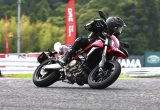 それ以外の細かい要素としては、冷却効果を高めるオイルクーラーの新設やフロントウインカーのLED化、液晶メーター内のギアポジションインジケーターの追加、2次減速比のハイギアード化(15/45→15/43)などが挙げられるものの、基本的に2016年型ハイパーモタードは、従来型を洗練させた熟成仕様と言っていいだろう。