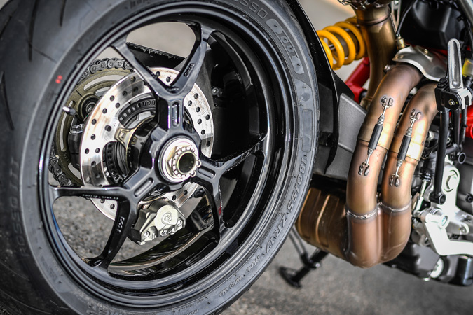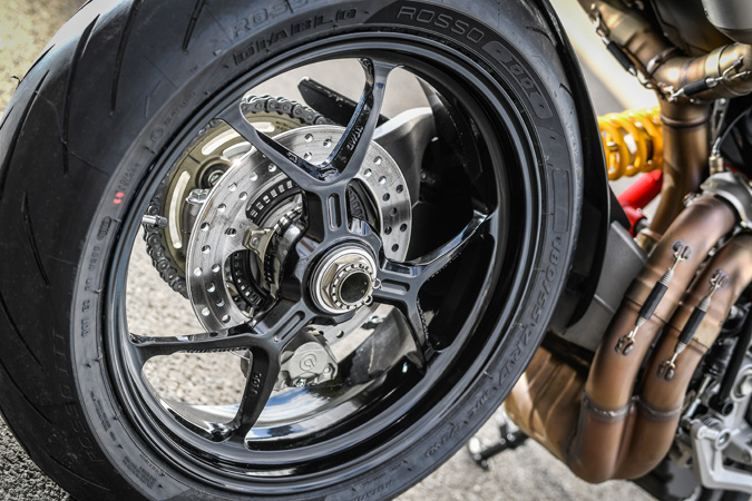 STDのホイールはアルミ製Y字3本スポークタイプ。タイヤにはピレリ製 ディアブロ・ロッソ3を装着。