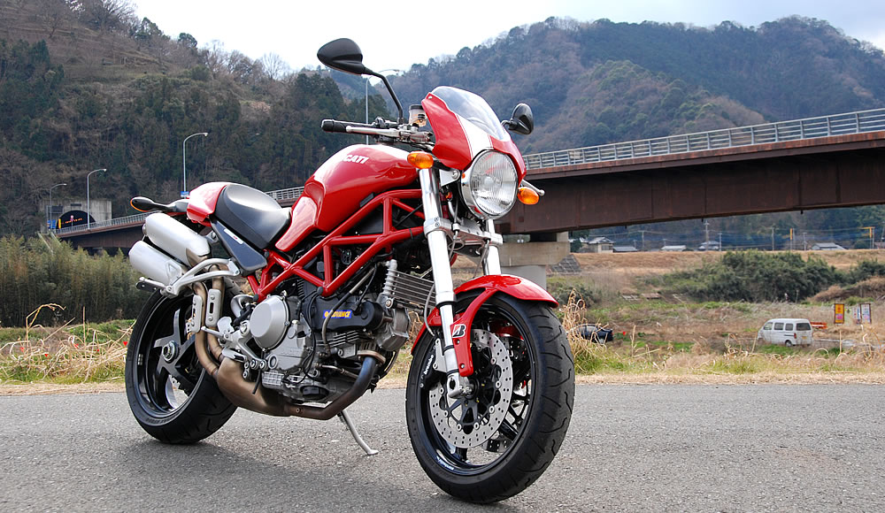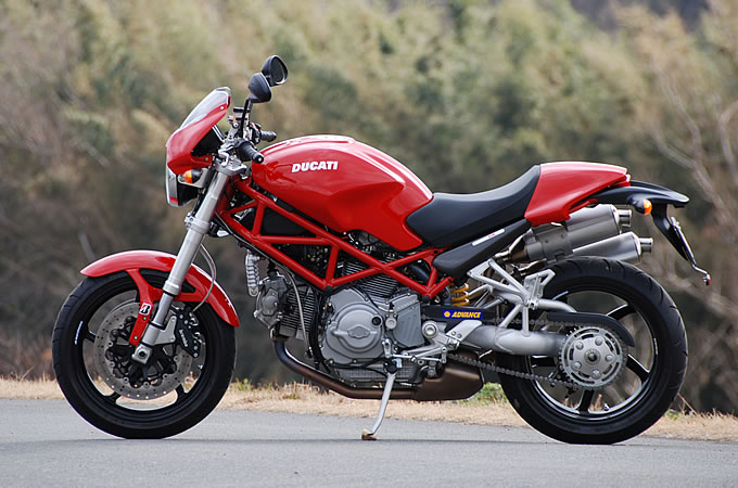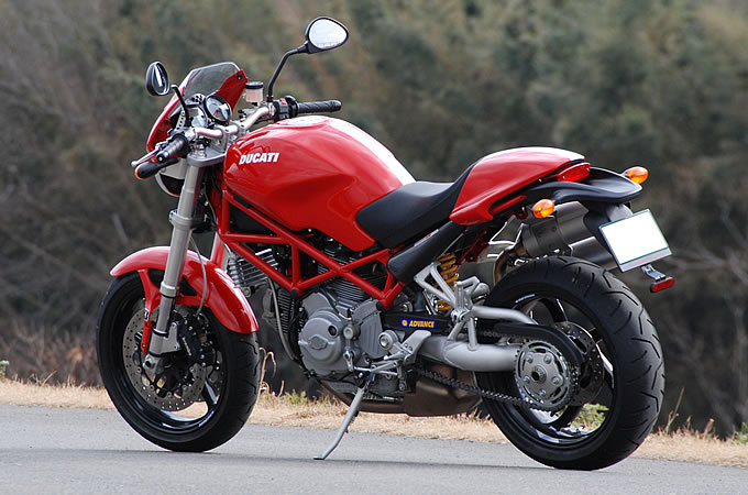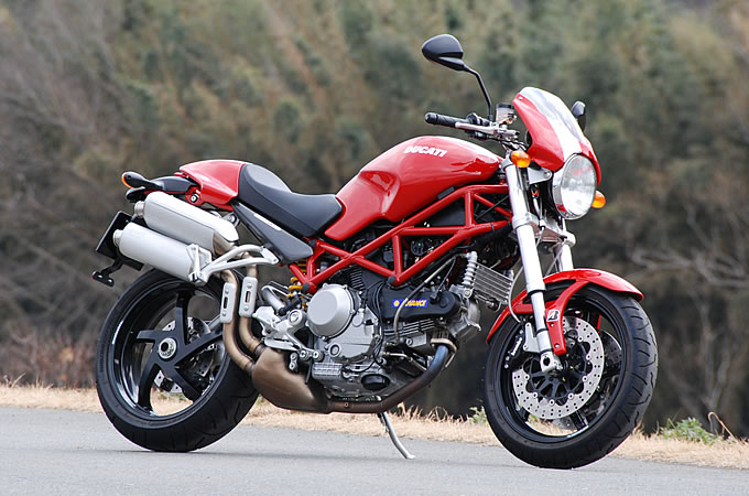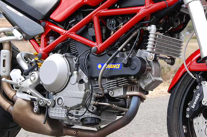 現行のモンスターシリーズは、水冷エンジンを搭載するS4R/S テスタストレッタ と、空冷エンジンを搭載するS2R1000、そして400がラインアップされている。モンスターS2R1000は、1000ccの空冷2気筒4バルブエンジンを搭載する。このユニットは、ドゥカティが一躍世界のスポーツバイク市場で名を馳せる原動力となった'89年に登場したSS900の900ccエンジンに端を発し、'00年にはインジェクション化、'03年にはツインプラグの1000ccへと進化した、いわば究極の空冷Lツインである。クラッチには乾式を採用しており、信号待ちなどでは「カラカラ」「ジャジャジャジャ」とにぎやかな音を立てるのもドゥカティの伝統のひとつ。ただし最近のドゥカティには国産車のような湿式クラッチを採用したモデルが増えてきており、S2R1000はドゥカティの中では由緒正しきモデルなのかもしれない。