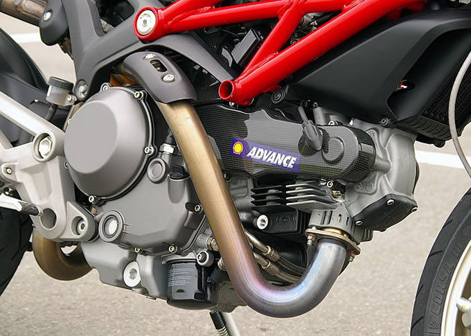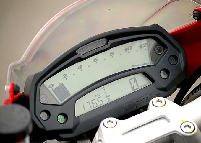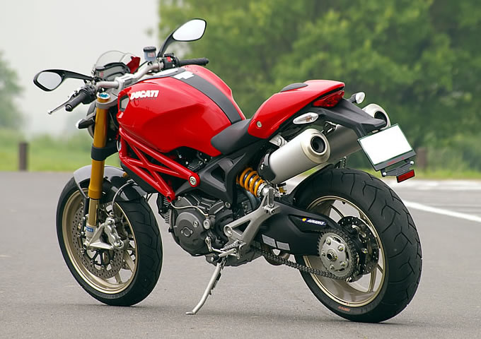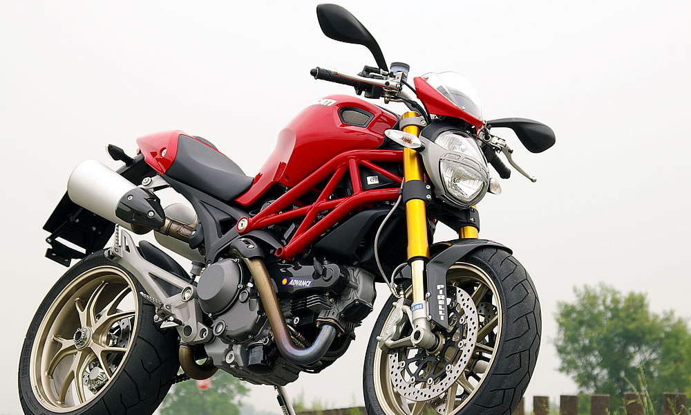 雰囲気こそ似通っているものの、このモンスターは先代モデルと比べると、各部が大幅に変更されている。その中でも特に注目したいのがフレームだ。ドゥカティのレース部門の協力によりデスモセディチRRの技術を導入し、ショートフレームコンセプトのもとフレームを新設計。スーパーバイク1098Rと同径同肉厚のチューブを採用し、軽量化と高剛性を両立している。また、フレームだけでなくスイングアームも新しくなっており、ホイールベースも10mm拡大。これに組み合わされるサスペンションは前後オーリンズのフルアジャスタブルタイプで、ブレーキはスーパーバイク848などでも使われている、ブレンボのラジアルマウントキャリパーをダブルで装備。エンジンについては、ドゥカティの伝統とも言える空冷2バルブデスモドロミックだが、こちらも以前のままではない。エンジン総重量の軽量化を図るため、高真空ダイカスト製法で作る完全新設計のクランクケースを採用。これまでのエンジンに比べ、3kgの軽量化を実現している。以前の面影こそあるものの、全く新設計のバイクと言っても過言ではないだろう。