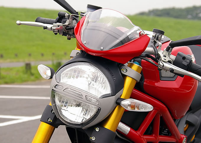 先代モンスターから、フェイスデザインは大きく変更された。ヘッドライト上部のカウルは見た名以上に整流効果を感じる。