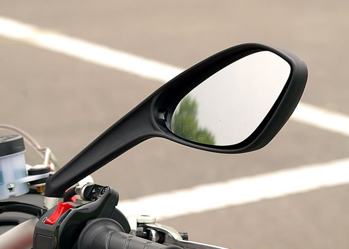 今まで丸型のスタンダードなミラーだったが、モンスター696からスーパーバイクをイメージさせるものとなっている。