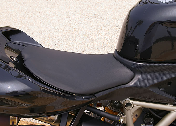 美しいバイクを作ることに定評があるドゥカティだが、1198Sのスタイルにはデザインだけでない、究極の機能美を感じさせるものがある。スーパーバイク1098と同様のカウリングの中には、必要なクリアランスを残してきっちりと各パーツが収められており、操作系もライダーの動きが最小で済むよう設計されている。そのためにユーティリティ性を排除した潔さとなっており、最低限の書類と工具入れ以外の余剰スペースは皆無。もしそういった部分を求めるのであれば、メーカーオプションや社外品などで補う必要があるだろう。ただ、1198Sの素性とバックボーンを考えると、こういう割り切った設計はむしろ好ましく感じるポイントだ。