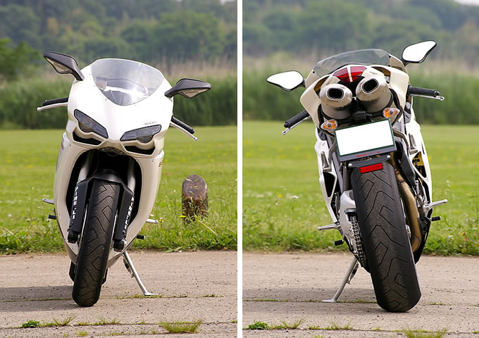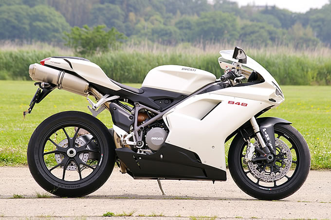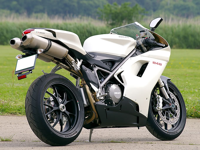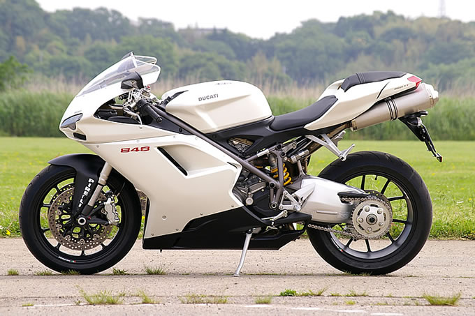 ドゥカティのスーパーバイクシリーズと言えば、やはりレースのイメージが強い。現に世界スーパーバイク選手権などで活躍するバイクと同じ車種に乗れる、というのは大きなアピールポイントの一つだ。しかし、今回インプレッションを行う「スーパーバイク848(以下848)は、既存のレースカテゴリと関連しない排気量を選択した、同社の看板シリーズに新たなる1ページを書き加えるエポックメイキングなモデルだ。レースで勝利するための絶対性能だけでなく、ストリートでの乗りやすさも重要な要素に位置づけられており、これまでのスーパーバイクにはなかった存在として熱い注目を集めている。日本では2009年2月から導入が開始されたが、その評判は「高い性能とユーザビリティを兼ね備えている」という上々なもの。これまでのイメージを覆すような848の評価が真実なのかどうか、早速自ら確かめてみることにした。