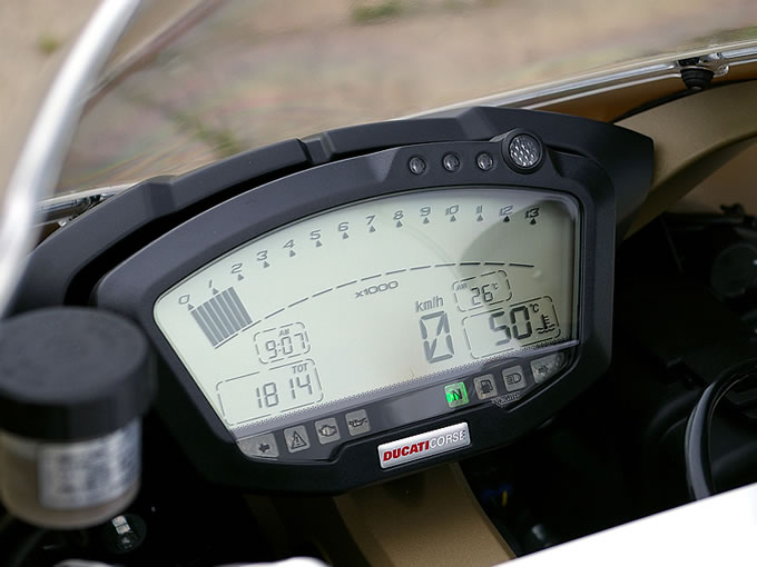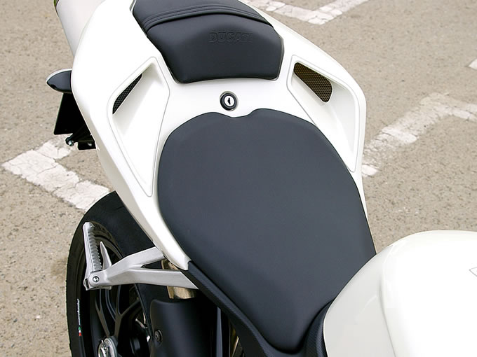 そして、このハイクオリティな車体に搭載されるエンジンにも注目しておきたい。L型2気筒4バルブ水冷エンジン「テスタストレッタ・エボルツィオーネ」は、各種規制が入った日本国内仕様においても129馬力を発生。一般的な速度域からハイスピードレンジまでスムーズに加速してくれる。手首の角度に応じて「ちょうど気持ち良いパワー」を与えてくれるため、振り回されるような恐怖感は少なく、扱いやすさが際立っている。おそらく国産スポーツから乗り換えても、大きな違和感は感じないはずだ。また、エンジンを回し切りたいアグレッシブなライダーにとっては、1098よりも魅力的な特性と言えるかもしれない。中間排気量だから楽しめる「ジャストサイズな高性能」も848の特徴のひとつだ。エンジン、装備、デザイン、どの方面から見ても848はドゥカティらしいプレミアムな存在感を放っている。乗って、見て、所有して楽しめるバイク=848というのは、少し言い過ぎだろうか。