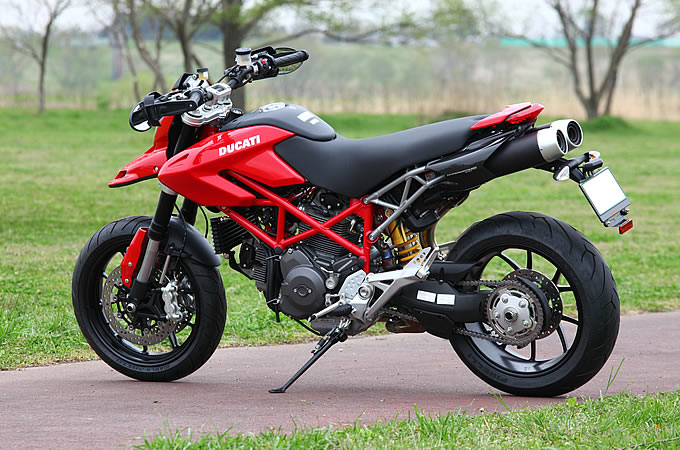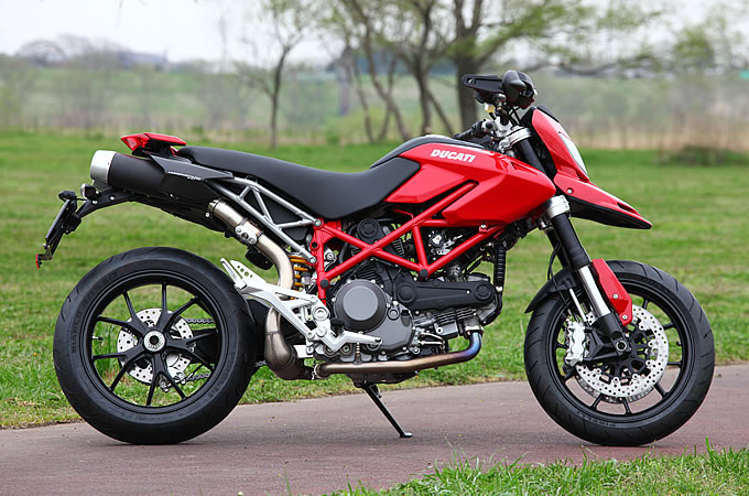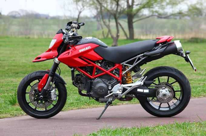 2005年のミラノショーでデビューしたハイパモタードシリーズは、今やすっかりドゥカティのラインナップとして定着した感がある。先日は弟分となるハイパーモタード796が日本市場に初上陸を果たしたが、今回はメインモデルとも言えるハイパーモタード1100がバージョンアップを敢行。新型エンジンを搭載し、「ハイパーモタード1100EVO」として生まれ変わった。モデルチェンジ最大のトピックスは、やはりエンジン。前モデルはツインスパークの「1100DSエンジン」に代わって採用された「デスモドゥエ・エボルツィオーネ」は再びシングルスパークへと回帰したが、最高出力・最大トルクともに向上し、ハイパーモタードのエキサイティングな性能に寄与している。また、フレームや足回りなどもリファインされており、スタイルこそ先代を踏襲しつつも中身は車名通りの進歩遂げていることは疑いようが無い。今回の試乗車両はまだ慣らしが完了していなかったため、高回転域でのパフォーマンスは確かめられなかったが、そんな状態でもハイパーモタード1100EVOの実力は侮れないものを秘めていた。