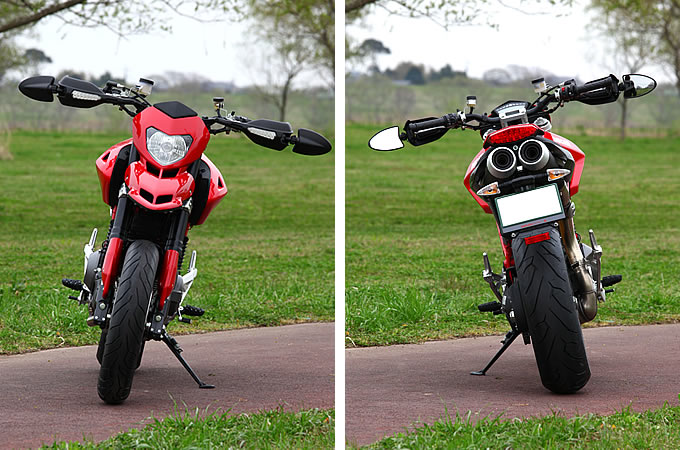 また、足回りの味付けの変化も進化のポイント。これまでのハイパーモタード1100Sは、エクストリームな乗り味が魅力であるのと同時に、エキスパート向けに設定された足回りが乗るライダーを選ぶモデルだった。ハイパーモタード1100EVOは、以前よりも接地感が分かりやすくなっており、低荷重の状態でもサスペンションがよく動く方向にリセッティングされている。エキスパートライダー以外でも、しっかりと美味しい部分を味わえる設定だ。先代モデルに乗って「ちょっと乗りこなせないかも…」と感じていたなら、今回の“EVO”を是非体験して欲しい。エキサイティングな走りを楽しむマシンがより身近になった、この進化は価値あるものと言えるだろう。