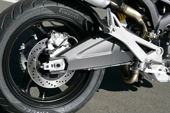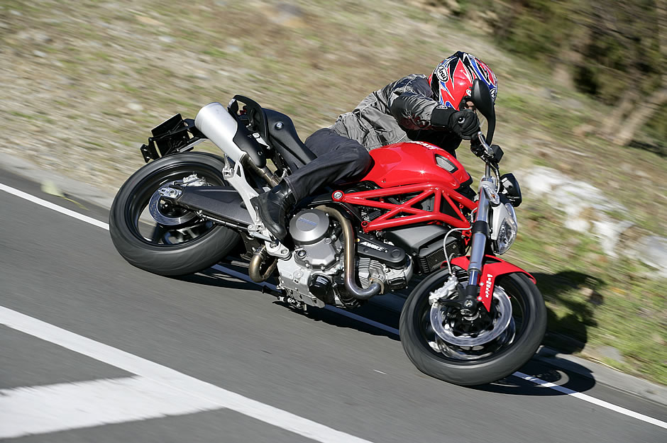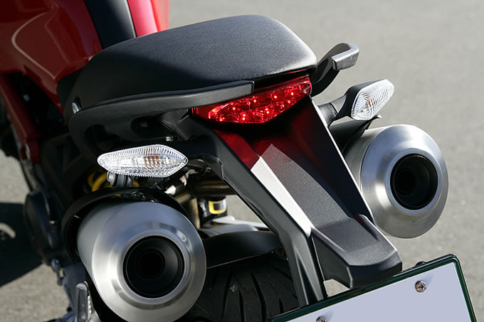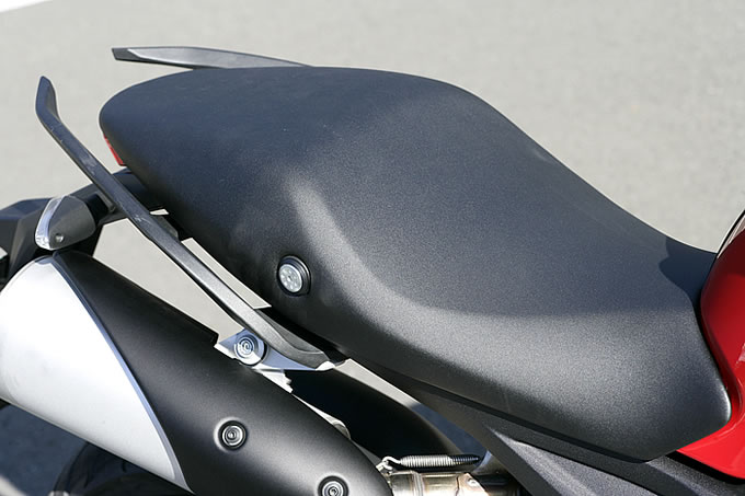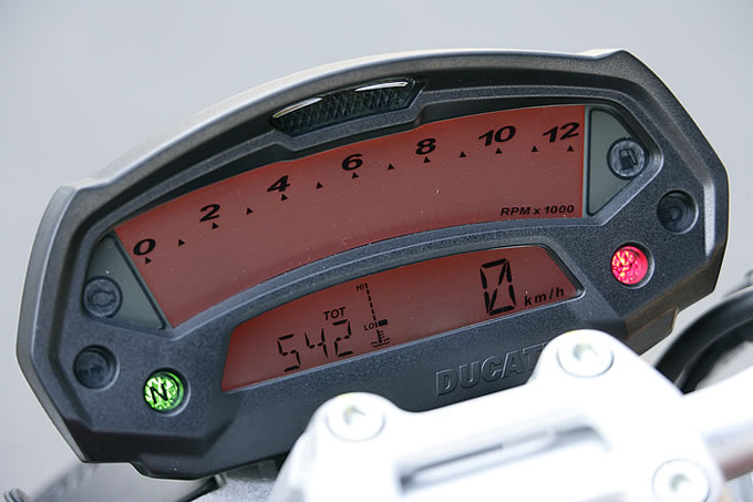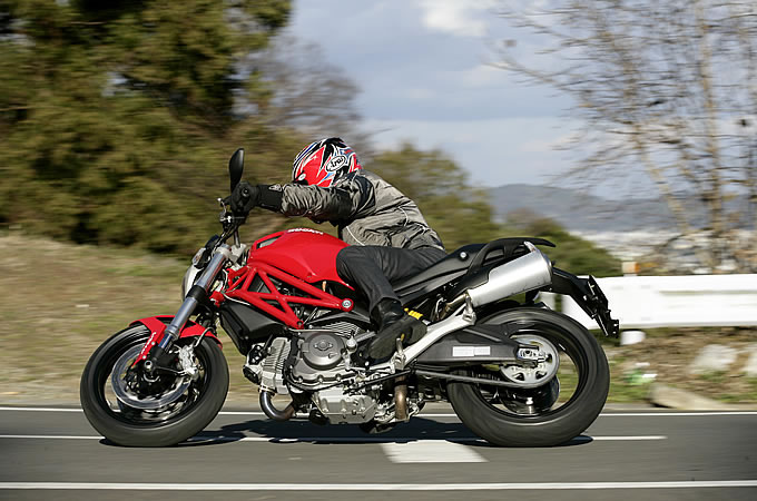 まず、使えるバイクの条件として挙げられる、ハンドル切れ角と足着き性の良さを満たしている。ハンドル切れ角32度は、多くの国産ネイキッドモデルより小さいとは言え、以前のモンスターや他のドゥカティよりも格段に大きい。足着き性も良く、これなら街中や道幅の狭い峠道を走らせてもストレスはないだろう。ハンドル幅も以前ほど広過ぎず、すんなり馴染むと思う。また2012年型からはハンドル位置が20mm高くなっており、ますます快適になっている。