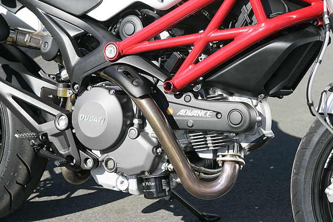 空冷2バルブユニットを搭載する現行のモンスターファミリー第1号車は、2008年デビューのモンスター696で、モンスター1100は2009年型として、2008年秋に登場した。このモンスター796の登場は2010年春で、ファミリー中、最も後発となる。これら3台は車体の基本を共用する兄弟機種なのだが、特に796と696は、一卵性双生児と言っていいほど共通点が多い。エンジンの基本も共通で、ストロークアップによって排気量を 695cc から 802cc に拡大しているのだ。