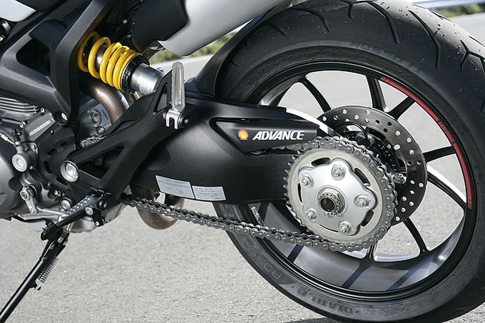 エンジンの回り方も、696が「ドコドコ」と軽快だとしたら、こちらの796は「ドコーッドコーッ」と、粘りと加減速の抑揚が強められている。スロットルワークによってピッチングを作り出しやすく、よりスポーティに扱う可能性が広がっているのだ。