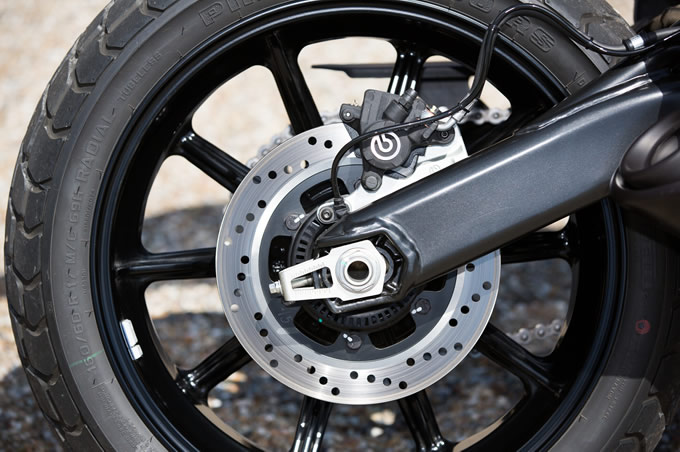 400ccということでハンドリングもさぞ俊敏かと思いきや、意外と安定志向である。専用設計のスチール製スイングアームによるしなり感、そしてホイールベースが15㎜伸びたこともあってか、高速道路のレーンチェンジなども割とねっちりしている。もちろん、スリムなLツインに専用160サイズの細めのリアタイヤならではの軽快さはあるのだが、いい意味で安心できる落ち着きのある乗り味と言っていい。