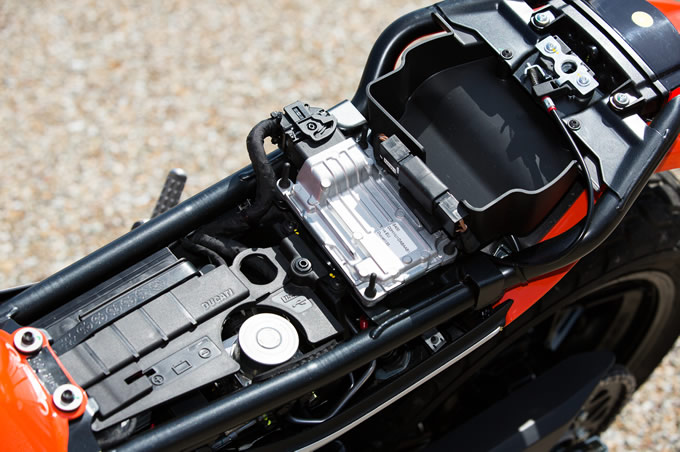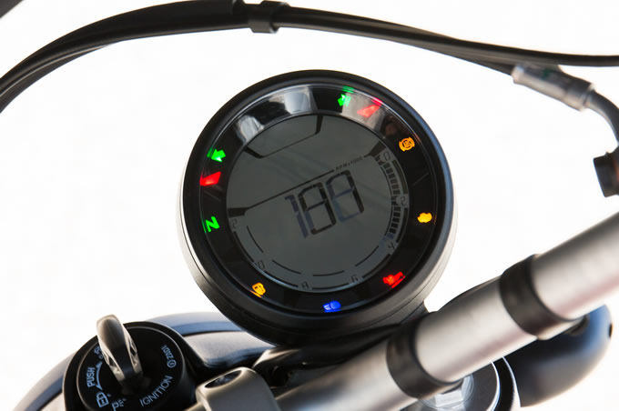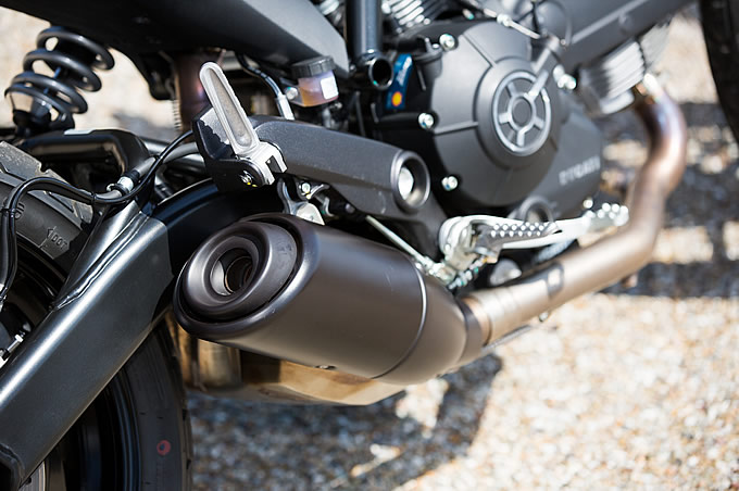 また、専用ロゴステッカーや独自のパイプレイアウトを持つユーロ4対応の新型エグゾーストシステム、丸型バックミラー、ハイマウントプレートホルダーを採用するなど、800cc版とはディテールも異なる部分が多い。