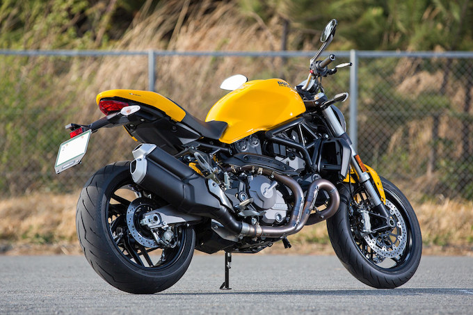新型モンスター821は1992年に発表された初代モンスターの誕生25周年を記念したモデルであり、デザインに初代モンスター900のエッセンスが注ぎ込まれているのが特徴である。2014年に登場した従来型をベースに各部に改良が施され、エンジンの出力向上やスタイリングのブラッシュアップを図りつつ、新設計マフラー、LEDヘッド&テールライト、TFTフルカラー液晶メーターなどが新たに採用されている。