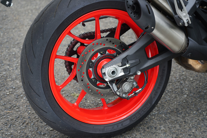 もし手練れならコーナーを攻めるような走りをし、コーナー脱出時にスロットルをワイド目にひねると、テールスライドもしくはバンクしたままフロントアップというような芸当を見せることができるが、ドゥカティの最新電子制御テクノロジーは偉大であり、破綻せずにパスできる。よって、ビギナーであっても究極的なスポーツライディングの世界を垣間見ることができるのだ。