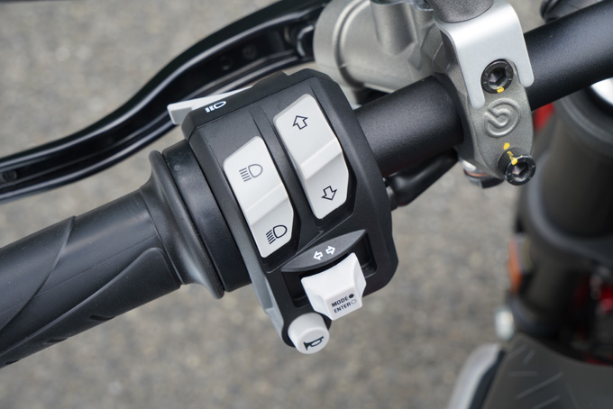 3パターン用意されたライディングモードも容易に変更することができ、それぞれの特性もしっかりと感じ取れる。ウエットなどの悪路や、市街地や高速道路など、ステージやシチュエーションによってモード変更を上手く使いたいところだ。