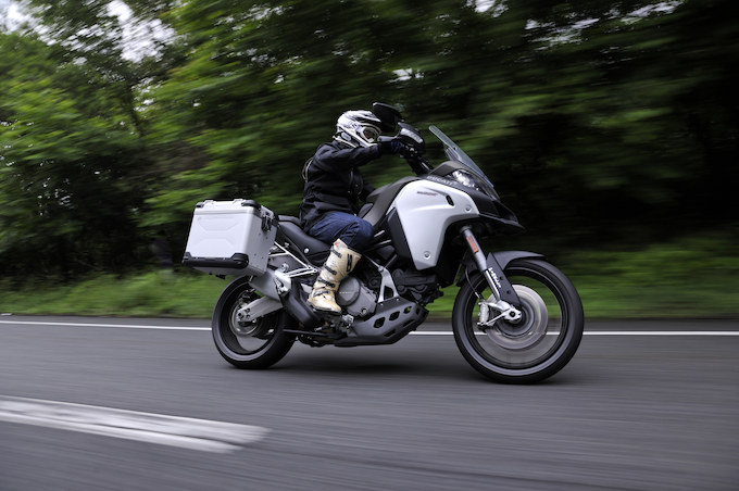 大径ホイールの採用やそれにともなうディメンションの変更はオフロード走行でのパフォーマンス向上を求めたものだが、それによってオンロードにおけるネガティブな部分は感じられなかった。個人的には、ワインディングでは「ツーリングモード」のややしなやかなアシの方が好みだった。足周りがキュッと締まった感じになる「スポーツモード」より、少しペースを抑えて走ってもピッチングを出せるセッティングの方がスポーティな走りが楽しめたのだ。