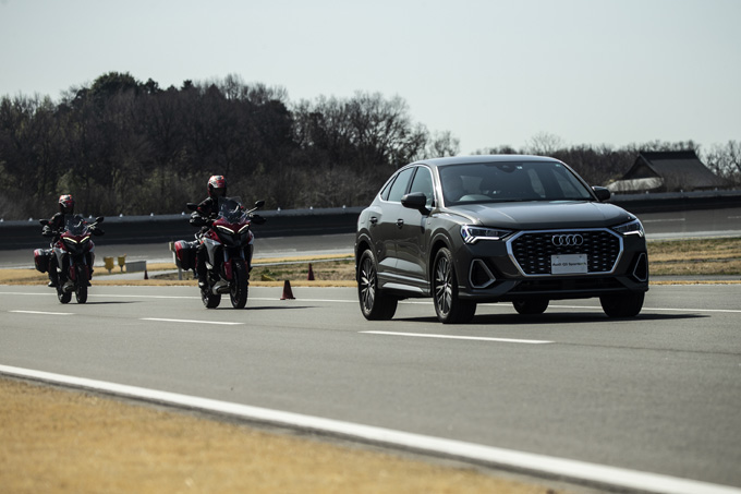 次にワインディングを模したハンドリング路ではライディングモードを先ほどの「アーバン」から「スポーツ」に変更。アクセルに対するレスポンスが鋭くなりエンジンの瞬発力が増すとともに、電子制御サスペンションのアクチュエーターが作動してリア車高が上がり、前後サスの減衰力が増してくるのが分かる。まさに戦闘モードだ。
