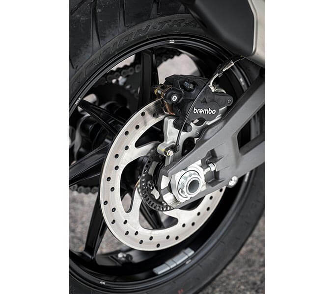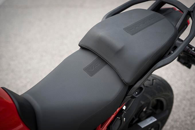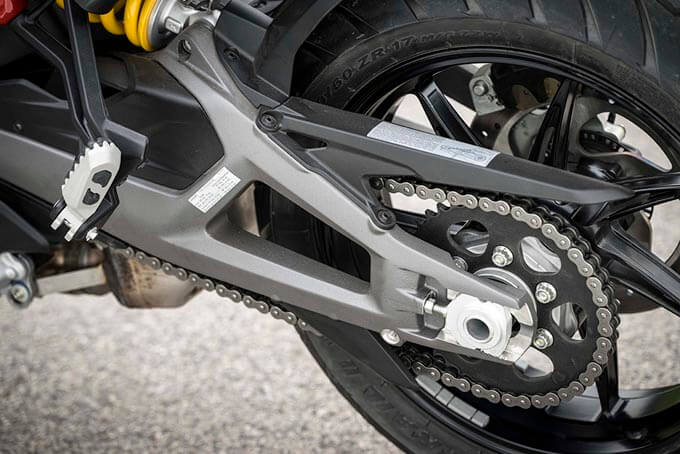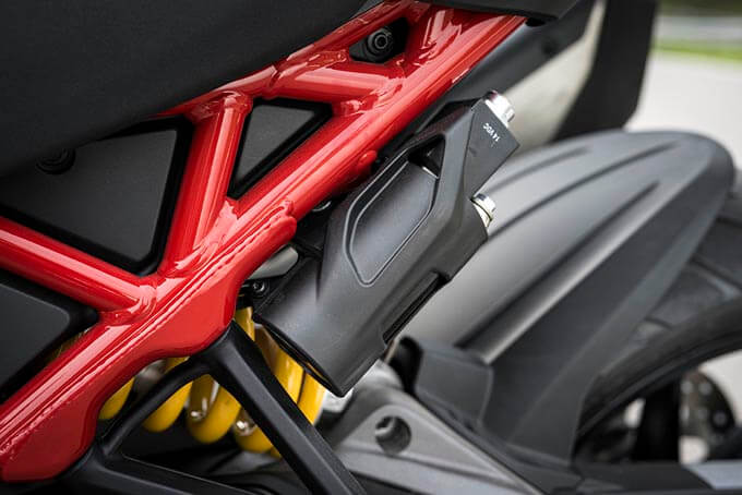 車体も改良が加えられた。アルミ製モノコックフレームはスイングアームピボット位置を1mm上げることで加速時やタンデム走行でのトラクションを向上。電子制御もさらに進化し、停止直前に車高を自動的に下げる機能の他、新たに「ウェット」モードを追加し雨天走行をサポート。また、前走車を自動追尾するACC(アダプティブ・クルーズ・コントロール)やバックミラーの死角に入ってきた車両を検知するBSD(ブラインド・スポット・ディテクション)に加え前方衝突警告機能も新たに実装されるなど、2025モデルはより安全で快適な方向へと深化を遂げている。