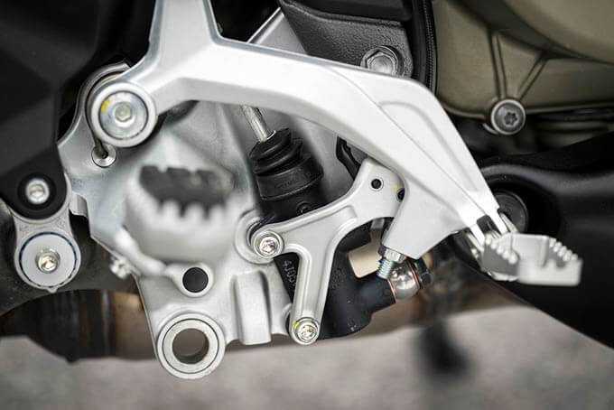 雨の中では新型の実力が光った。スイッチ一つで「ウェット」モードに切り替えると、出力特性が穏やかになりコーナリングABSやトラコンも最適化され、サスペンションも低ミュー路面でのグリップを優先した「ウェット」専用の設定へと自動調整される。また、バンプ検知機能により路面の大きな凸凹もスムーズにいなしてくれるなど、とにかく電制が賢い。とりわけ印象に残ったのが前後連動ブレーキ。従来のフロントからリアへの制御だけでなく、新たにリアブレーキ操作だけでも前後に最適な制動力を配分される機能が付くなど至れり尽くせり。けっこうなペースで走っていても、ほぼリアブレーキだけで事足りてしまう。という感じで変な話、土砂降りの中でラフにアクセルを開けても急ブレーキをかけても、なかなか破綻してくれないのだ。「そんなマシン任せは望んでないよ」という人もご安心を。必要に応じてサポート機能をオフにもできるので、自分で操る楽しさを奪われることはないのだ。
