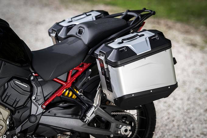クラス最強レベルの最高出力170psを発揮する「V4グランツーリスモ」と名付けられた水冷90度V型4気筒1158ccエンジンは従来モデルを踏襲しつつ、新たにエンジン休止システムを導入。低回転時に前方バンク2気筒のみを稼働させることで低燃費走行やエンジンの熱対策を向上させている。ちなみにパニガーレやストリーファイターに搭載されているV4エンジンとは排気量や出力特性も異なる専用設計である。バルブ駆動方式も伝統的なデスモドロミックではなく耐久性に優れるスプリング方式とすることで6万kmのメンテサイクルを実現。距離を走るツアラーとしては大きなメリットとなっている。