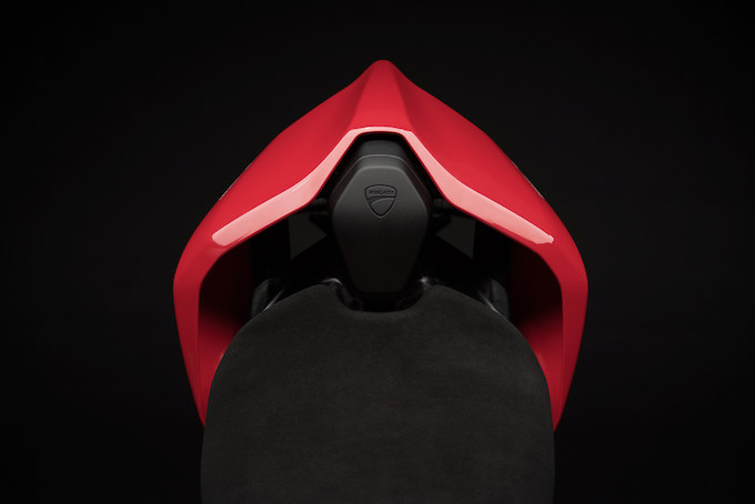 シャープな形状のシートカウルはエアロダイナミクスと軽量化を両立させるため、空洞になるようにデザインされている。また、その内部はウイング型のLEDライトユニットが内蔵され、カウルを取り外した時のたたずまいも考慮されている。