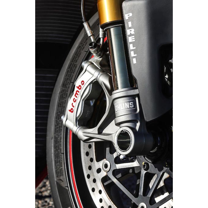 キャリパーもまた、このマシンのために開発されたブレンボ製のStylema(スティルマ)。従来のM50をベースに改良されたモノブロックキャリパーで、剛性を犠牲にすることなくコンパクト化と軽量化(片側でマイナス70g)に成功している。