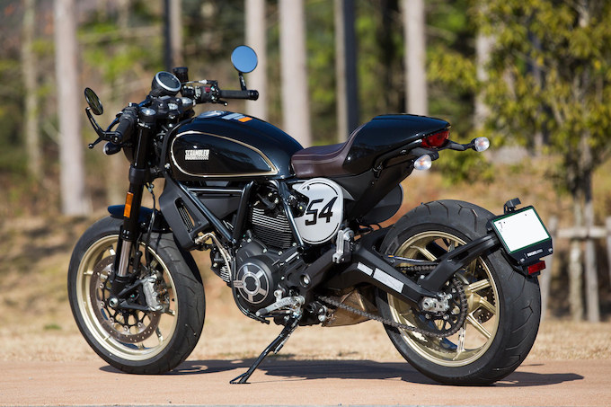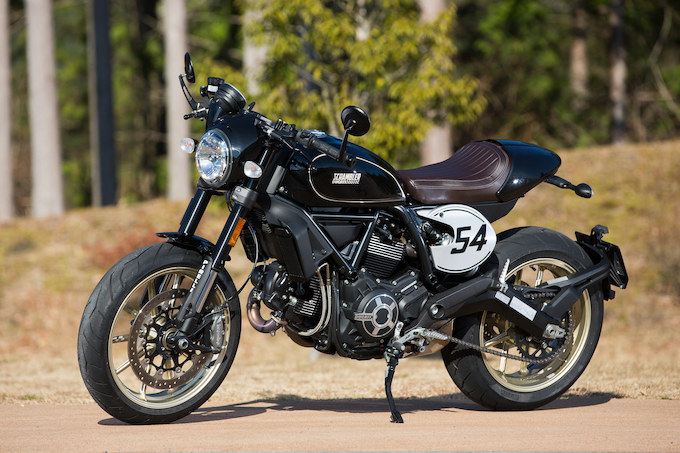 まずは外観がユニークだ。繰り返しになるが、60年代カフェをスクランブラー流に料理した懐かしくも新しいデザインに目を奪われる。角度によってはダートトラッカーのようにも見える、なんとも表現しづらいスタイルだ。