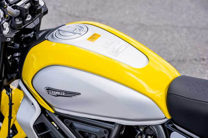 燃料タンクは13.5Lで旧モデルから変更なし。走行可能距離は満タンで300km前後というところだろうか。タンク、ヘッドライトカバー、フロントフェンダー、リアフェンダーのカラー部分はカバーキットとして販売しており、気分によって印象を大きく変えることができる。