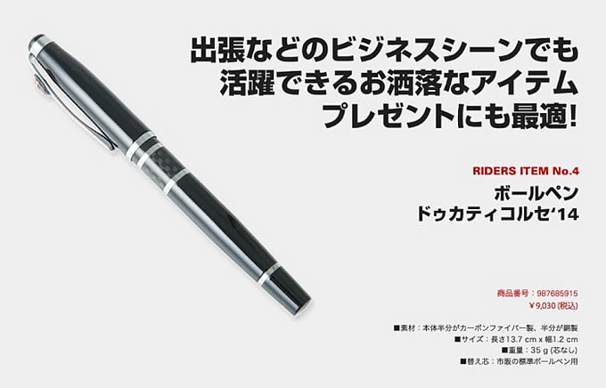 一部分にチェック柄があしらわれたスタイリッシュなデザインが人気のプレミアムビジネスペン。DUCATI CORSE のメタルロゴが高級感を印象付けています。オフィスライフをスタイリッシュに演出する逸品。書き味抜群のビジネスペンで、ギフトとしてもぴったりです。