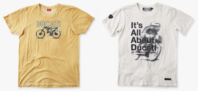 そしてドゥカティファンにたまらないのが、ドゥカティの歴史をモチーフにしたTシャツ。名匠 ジウジアーロがデザインした 80’s ロゴを配したTシャツや、1972年のイモラ 200 で勝利を飾った ポール・スマート を記念するヒストリーTシャツなども多数ラインナップしています。