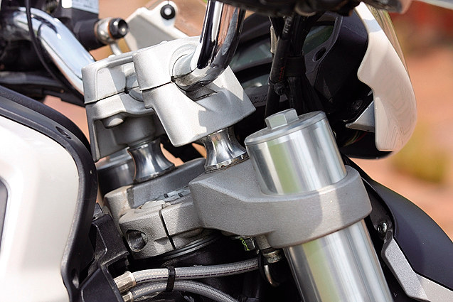 ハンドルポストにカラーを追加し、アエラ製のハンドルを使用してグリップ位置を上げ、ライディングポジションをアップライトに変えている。