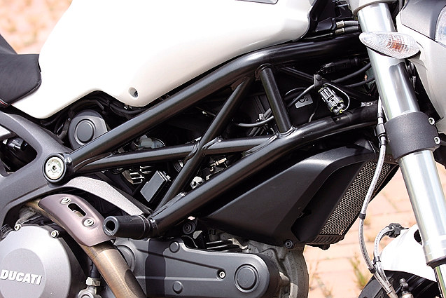 フレームはドゥカティ伝統の鋼管トレリスフレームと、アルミ鋳造製のシートレールで構成。菅野さんは「ドゥカティらしい部分」とお気に入り。