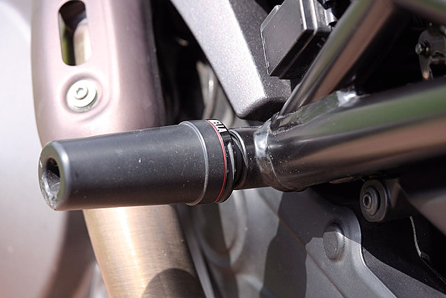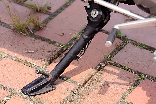 サイドスタンドを出しやすくするために、ボルトでフックポイントを追加。ドゥカティ札幌の女性ユーザーには、定番のカスタマイズのようだ。