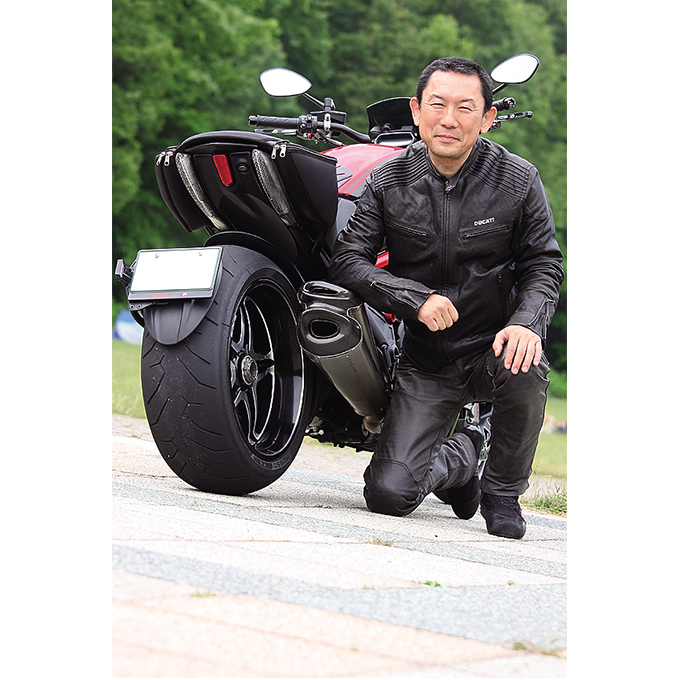 ディアベルだけの個性的なフォルムは、走っているだけで注目度抜群とのこと。240サイズのリヤタイヤを履くマッシブなリヤビューは、藤井さんお気に入りのポイントだ。
