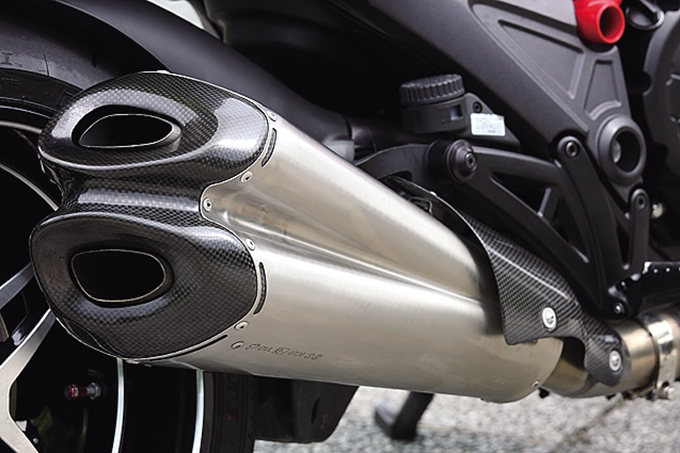 マフラーはECUと併せて、ドゥカティパフォーマンス製にリプレイス。Lツインならではの、鼓動感溢れる小気味よいサウンドを響かせてくれる。