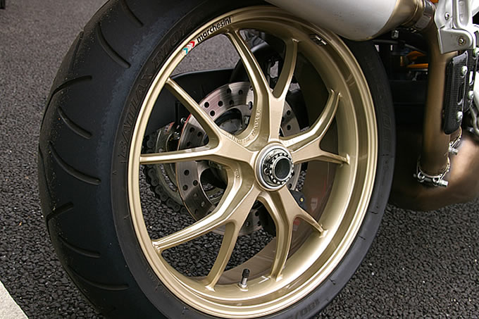 ホイールカラーもマグネシウム。前後にオーリンズ製サスペンションを持つ上位モデルならではの豪華な足回りにマッチした配色だ。
