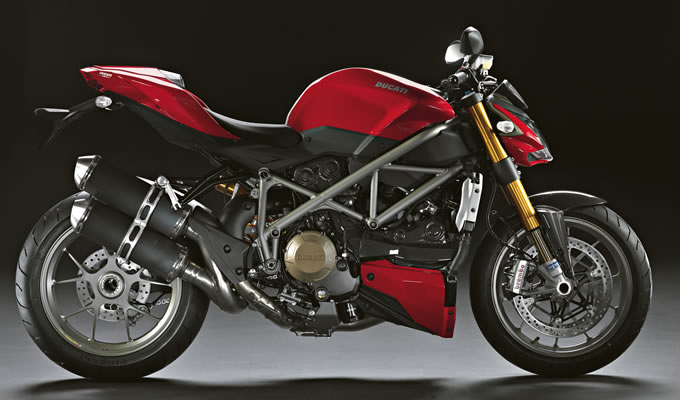 ストリートファイター メーカー希望小売価格(税込) = 189万円 スーパーバイク1098に搭載されていたハイパワーなテスタストレッタエボルツィオーネエンジンを、ストリート向けにモディファイし、名前の通りの戦闘的なルックスを持つ車体に搭載。