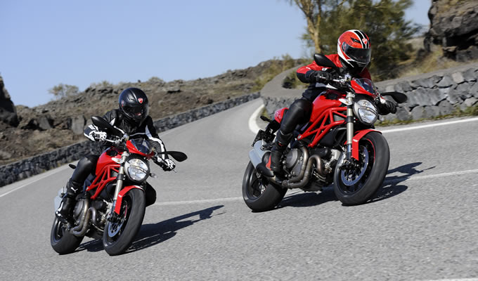 ドゥカティのラインナップ中もっとも小さな排気量の 696cc ながら、空冷Lツインの鼓動感とトルクをしっかりと体感できる。軽量な車体とよく回るデスモエンジンの組み合わせは走るシーンを選ばない。また、両持ちスイングアームを採用する唯一のドゥカティでもある。