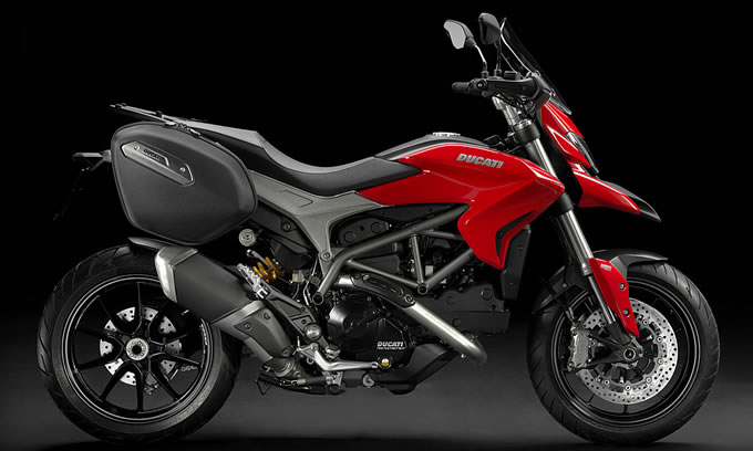 ハイパーモタードをベースとして、前後サスペンションのストロークを大きく減らし(前/170→130mm、後/150→133)、20mm 高いハンドルバーライザーを採用。リアショックにはダンピングおよび油圧式スプリングプリロード調整機構を追加することで、ライディングポジションと足つき性を向上させ、長距離/長時間走行におけるライダーの疲労を軽減するデザインとした。ハイパーモタードシリーズに分類されるが、車名は「ハイパーストラーダ」となり、ハイパーモタードとは一線を画すモデルとなっている。いわば「ミドル版ムルティストラーダ」の位置づけだ。