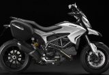 ハイパーモタードSP がスポーツチューンモデルならば、ハイパーストラーダはツーリングチューンが施され、アドベンチャーツアラーにカテゴライズされるモデルだ。前後サスペンションはストローク量を減らし(フロント/170→130mm、リア/150→133mm)、20mm 高いハンドルバーライザーによって、より快適な乗車姿勢を実現。ダンピングと油圧式スプリングプリロード調整機構を持つリアショックは、ライディングポジションと足つき性を向上させている。