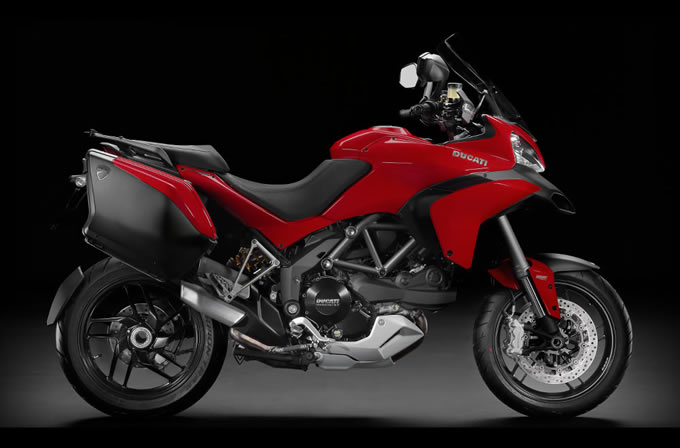 名称が示すとおり、ツーリングに特化したチューンとアクセサリーを装備したモデル。前後サスペンションにはザックス製セミアクティブ式電子制御 DSS(ドゥカティ・スカイフック・サスペンション)が採用され、路面や加減速状況に応じて最適なダンピング特性へと自動変更する。さらに、乗車人数や積載状況に応じて4種のプリセットからサスペンションセッティングを選択可能だ。これにより、走行性能と快適性は著しく向上している。